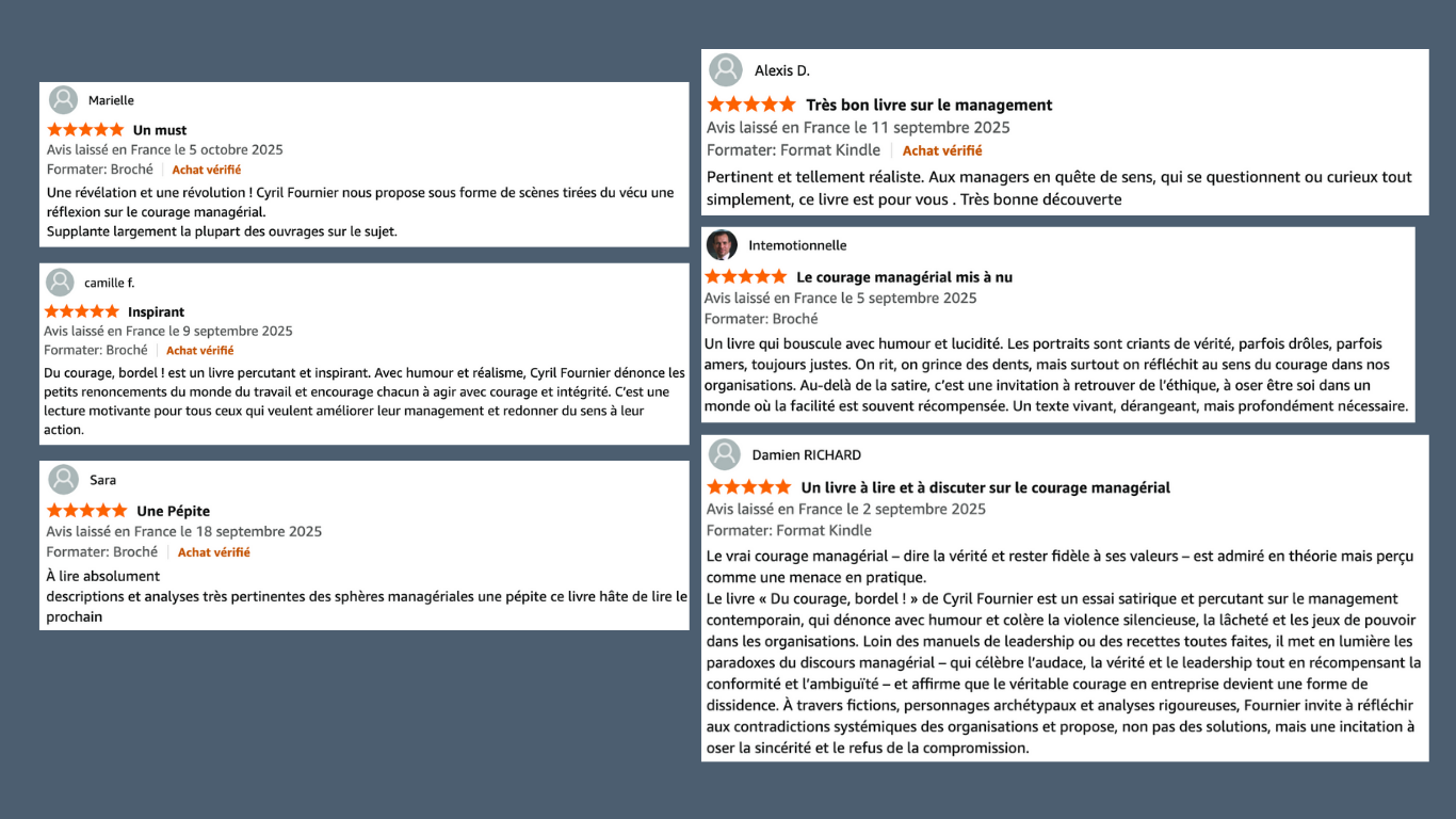 Écrit par un Colonel de sapeurs-pompiers devenu chercheur en management, ce livre bouscule les codes bien-pensants du monde du travail et met en lumière ce que tant de cadres ressentent sans jamais oser le dire : le courage n’est pas toujours récompensé… souvent, il dérange.